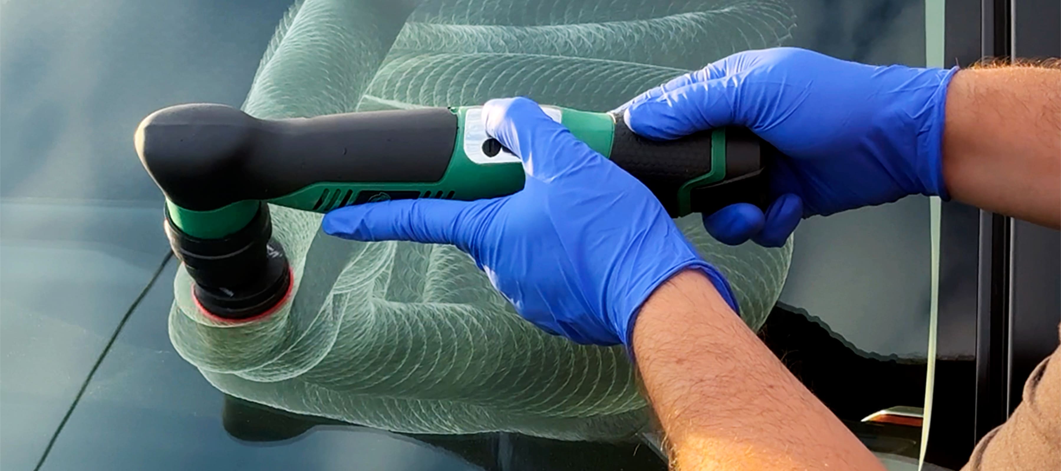 After washing the car at least once, make sure the glass is free of dust. Moisten the applicator (or spray water on the glass if using a machine), apply the product onto the applicator, and spread it evenly over the surface. If it starts to dry, re-moisten the applicator. Spread well and wipe off excess with a damp microfiber cloth. You can also use Surface PREP to remove residues. Repeat if necessary.