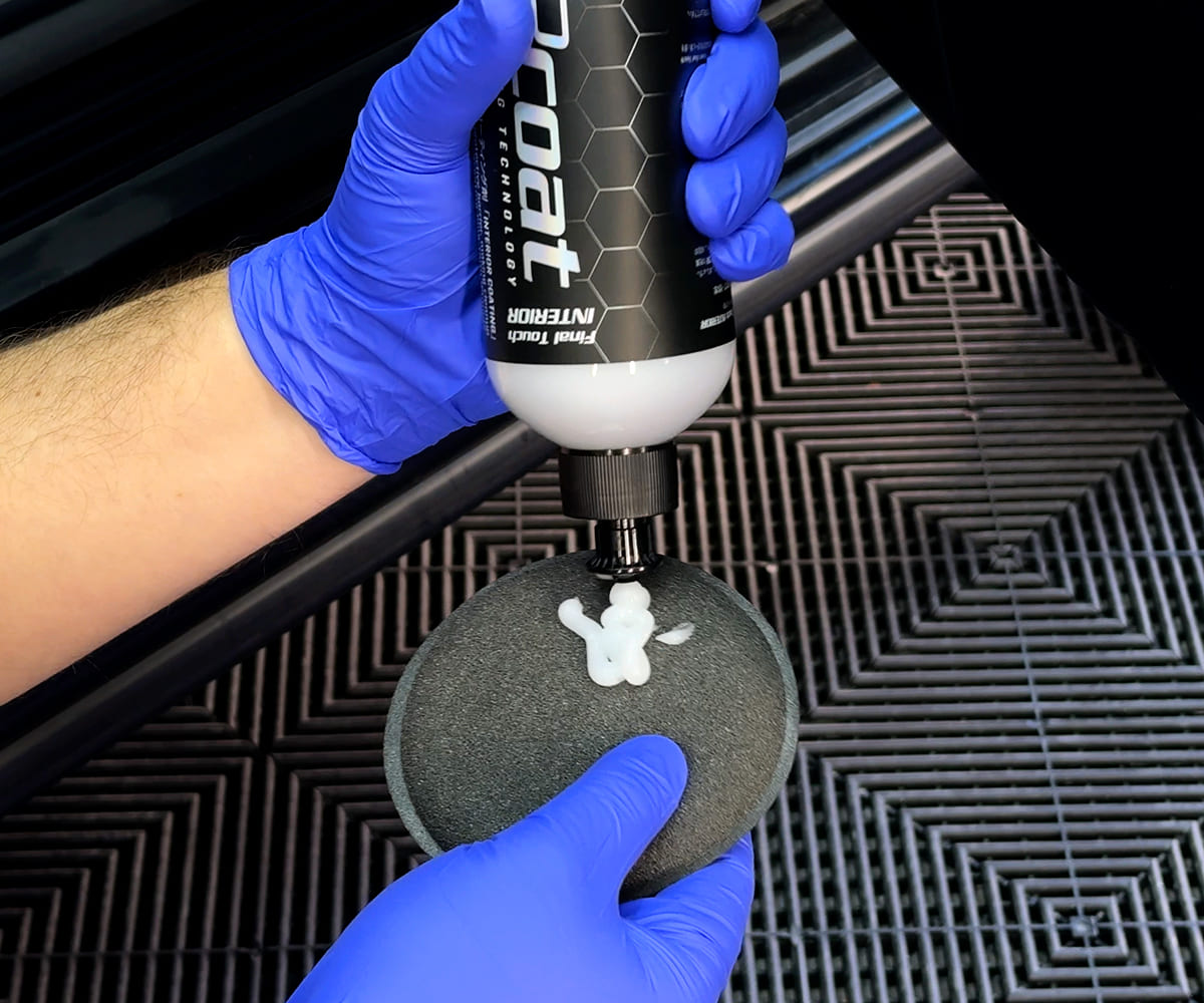 After cleaning the interior, apply an appropriate amount of the product to an applicator and spread it evenly over the target surface. Wipe off any excess product, then finish with a dry microfiber cloth for a clean, even finish.