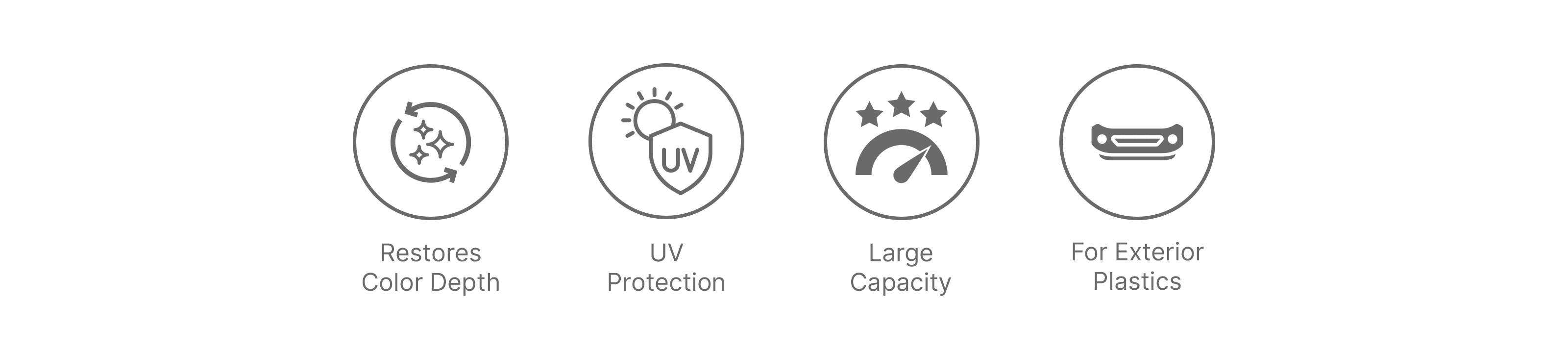 Designed to maintain and restore exterior plastics, keeping their original gloss and bringing back depth to faded trim.