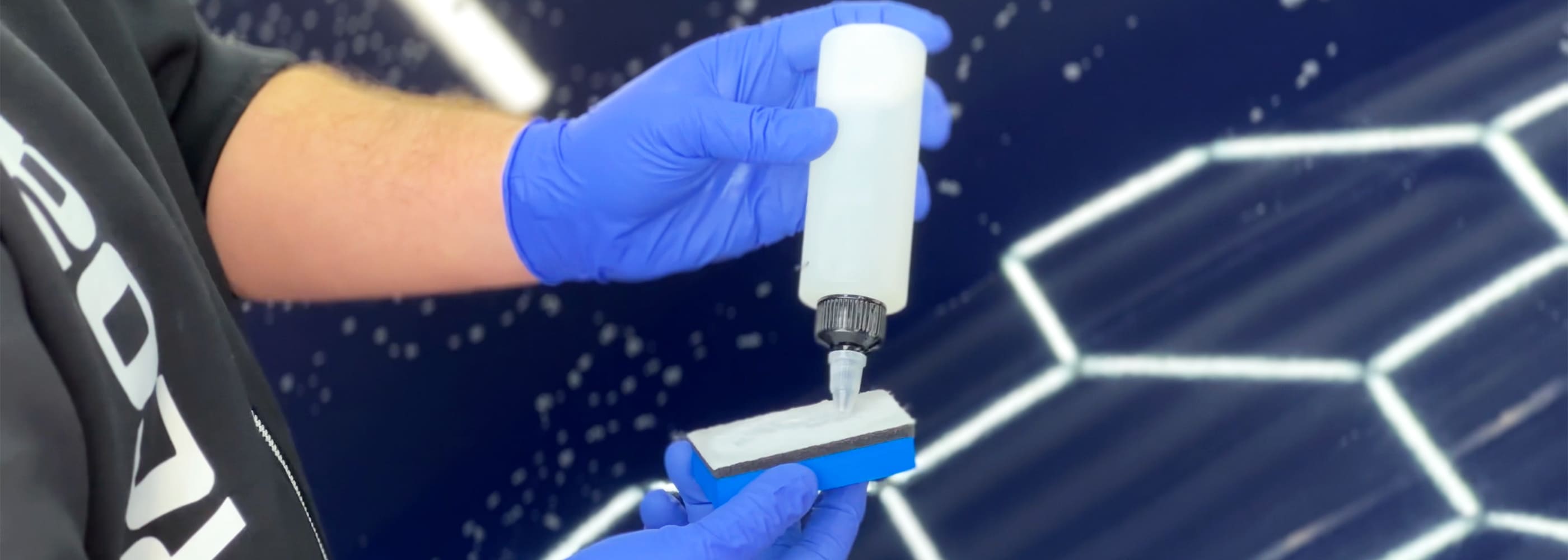 Ensure the area is clean before starting. Fill a bottle with the diluted product and apply generously using an applicator or detailing brush. Gently agitate the surface until contaminants are removed, then rinse thoroughly with water.