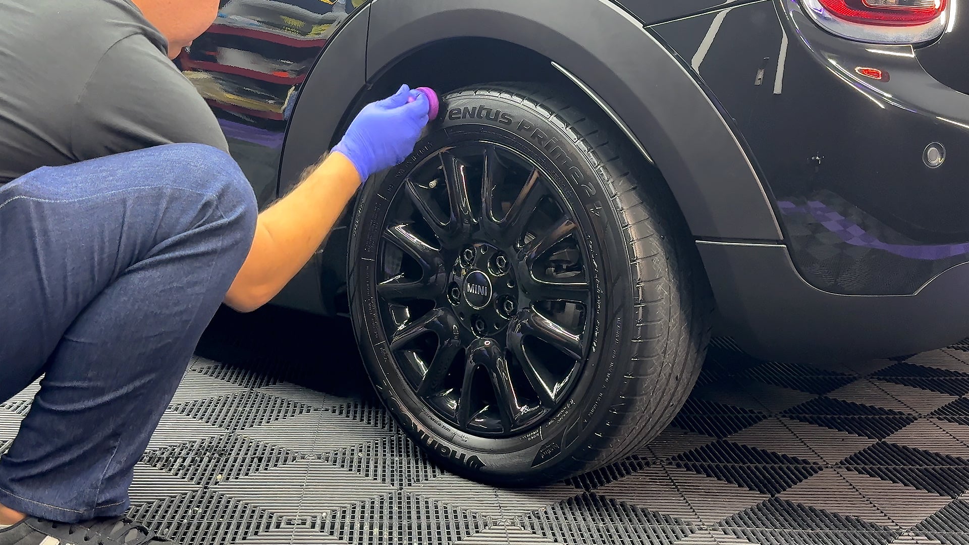 オイルベースの高性能タイヤコーティングにより、OVERcoat Final Touch TIRE は少量で広範囲に使用可能。
