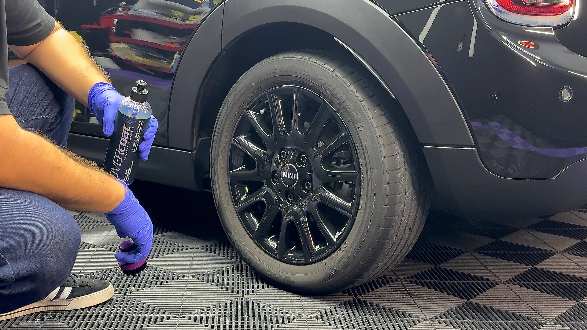 タイヤの美しい仕上がりだけではありません。OVERcoat Final Touch TIRE は撥水性の保護膜を形成し、汚れの付着を防ぎます。