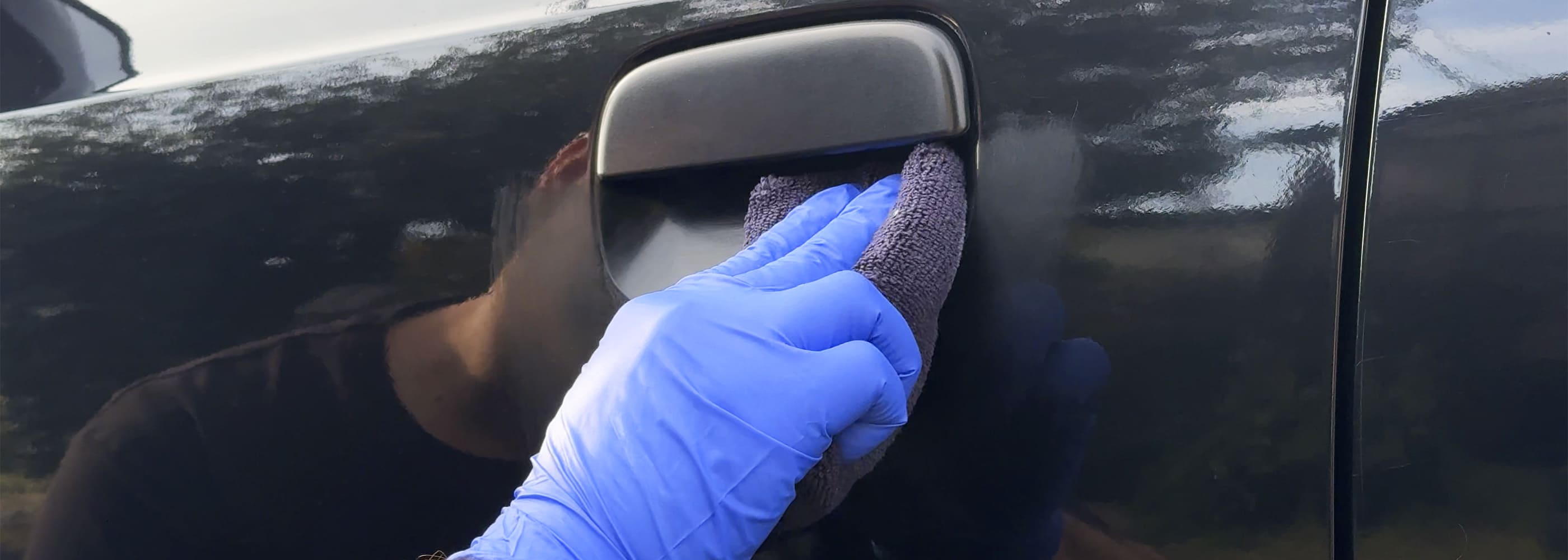 NANOpolishをマイクロファイバーに少量つけ、ドアノブ周りなど気になる部分を軽い力で小さく往復させて磨きます。乾いてきたら少量足して続けてください。磨き終えたら乾いたマイクロファイバーで拭き取って仕上げます。仕上がり確認はSurface PREPで脱脂→強めのライトでチェックがおすすめです。